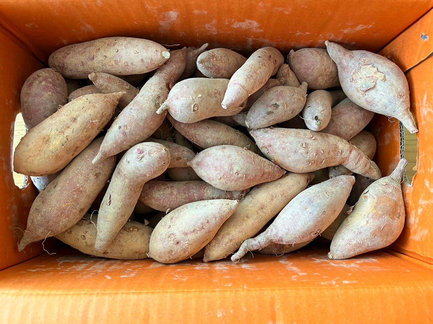 -> 배송된 고구마는 밀봉된 상태로 온다. 외부 온도 차이로 인한 박스 내 습기는 고구마 부패의 원인이 될 수 있다. 따라서 받자마자 고구마 박스를 열고, 신문지 위에 펼쳐 상태를 확인하는 것이 중요하다. 습기가 있을 경우, 신문지 위에서 4~5시간 동안 건조해주면 좋다. 이 작은 주의가 고구마를 신선하게 유지하는 데 도움이 된다.