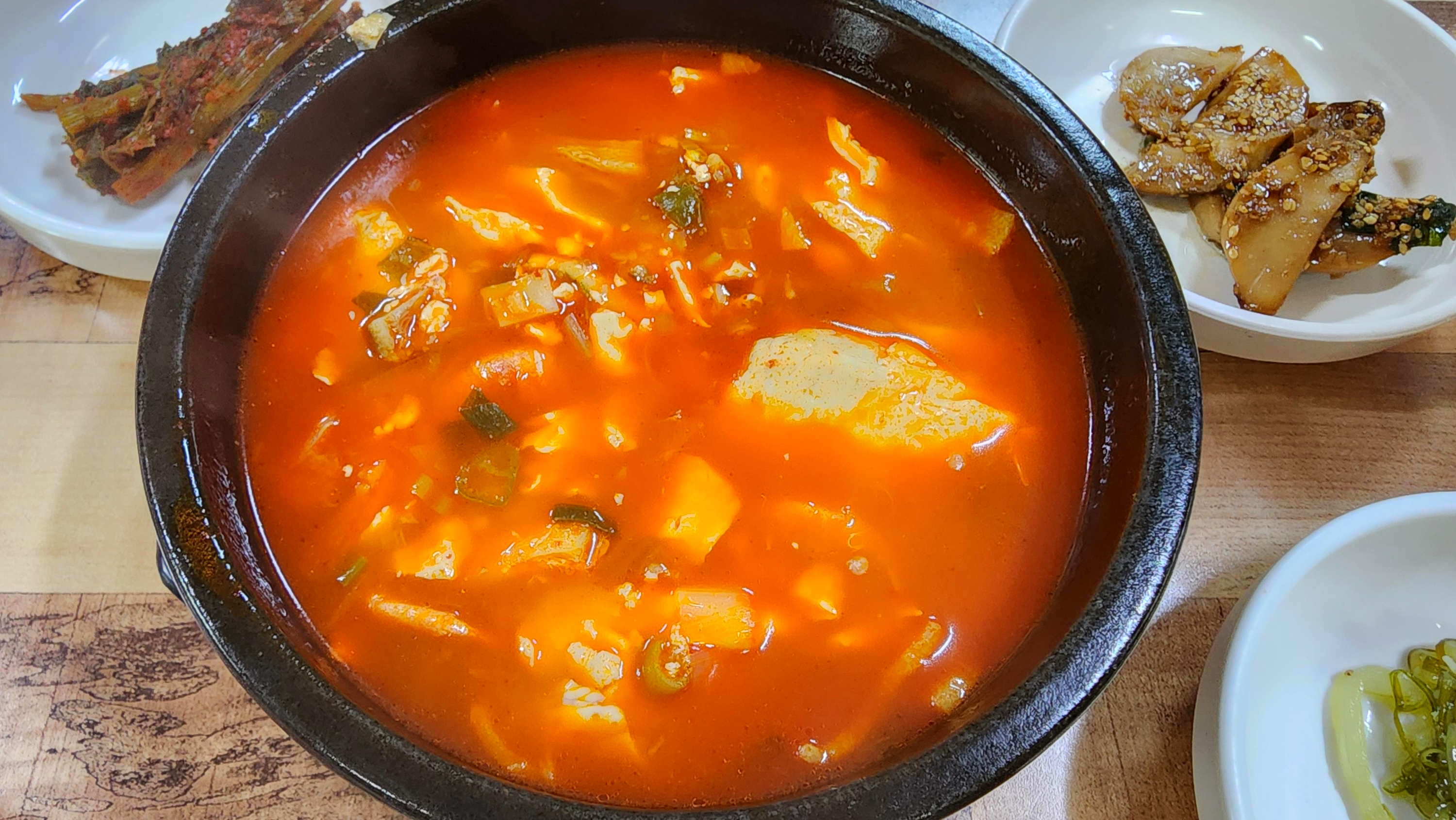 3. 뚝배기에 끓여나오는 순두부찌개는 보는 것만으로도 군침을 돌게 한다. 당장이라도 끓어 넘칠 듯 아슬아슬한 모양도 그렇거니와 끓는 소리가 계속해서 입맛을 자극하기 때문이다. 보들보들 넘어가는 순두부로 맑게 끓인 순두부찌개에는 간간한 새우젓이 찰떡궁합이다. 일성가마솥맛집 메뉴 중 '백반정식'을 주문하면 메인메뉴로 '순두부찌개'가 나온다.