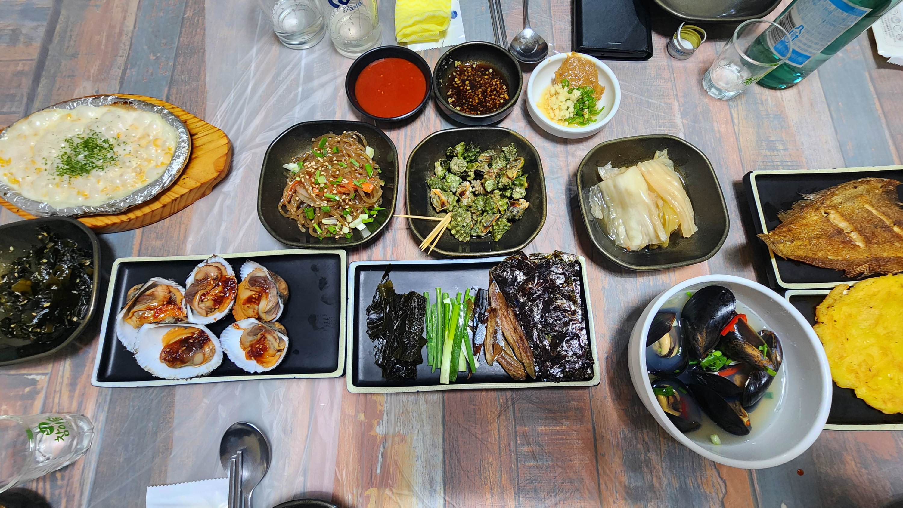 ▶'푸짐한 곁들이찬'으로는=> 잡채, 미역국, 단호박 전, 간장게장, 삶은 고동, 가자미구이, 씻은 김치, 홍합탕, 피꼬막, 과메기쌈, 콘치즈 등