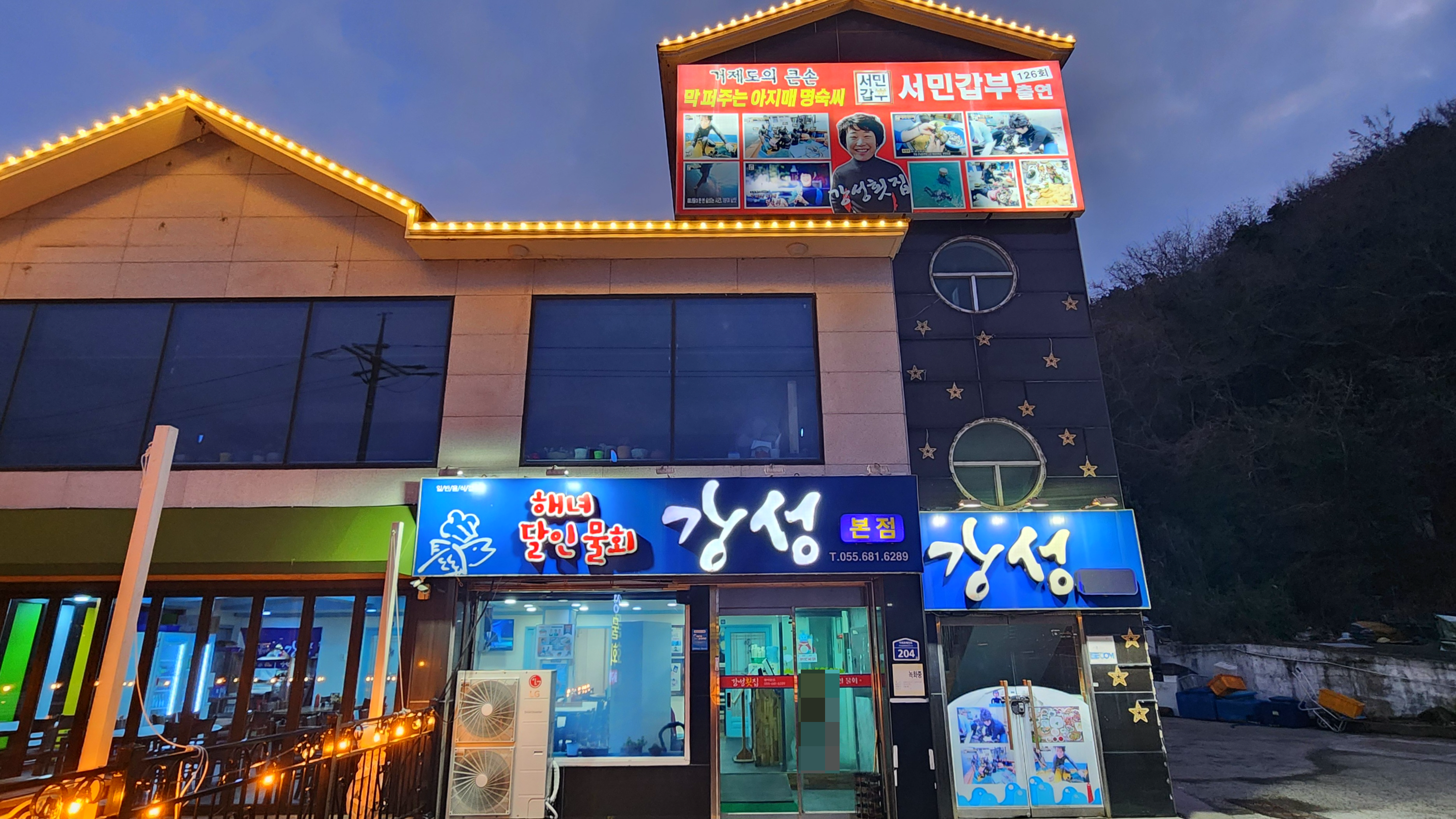 6. 강성횟집은 거제 해녀가 직접 공수한 신선한 해산물을 양껏 먹을 수 있는 곳으로 현지인과 여행객 모두에게 꾸준히 사랑받는 식당이다. 추천메뉴1번은 바로 '강성스페셜'로 싱싱한 활어를 먹을 수 있는 메뉴이다. 모둠회와 함께 전복, 성게 알, 소라, 돌멍게, 꽃 멍게, 개불, 돌문어 등이 나오는 거제 해산물 총집합이라고 할 수 있다. 이 외에도 해산물모둠, 회모둠 메뉴가 준비되어있고 상에 함께 차려지는 푸짐한 곁들이찬도 맛깔 나기로 유명하다.