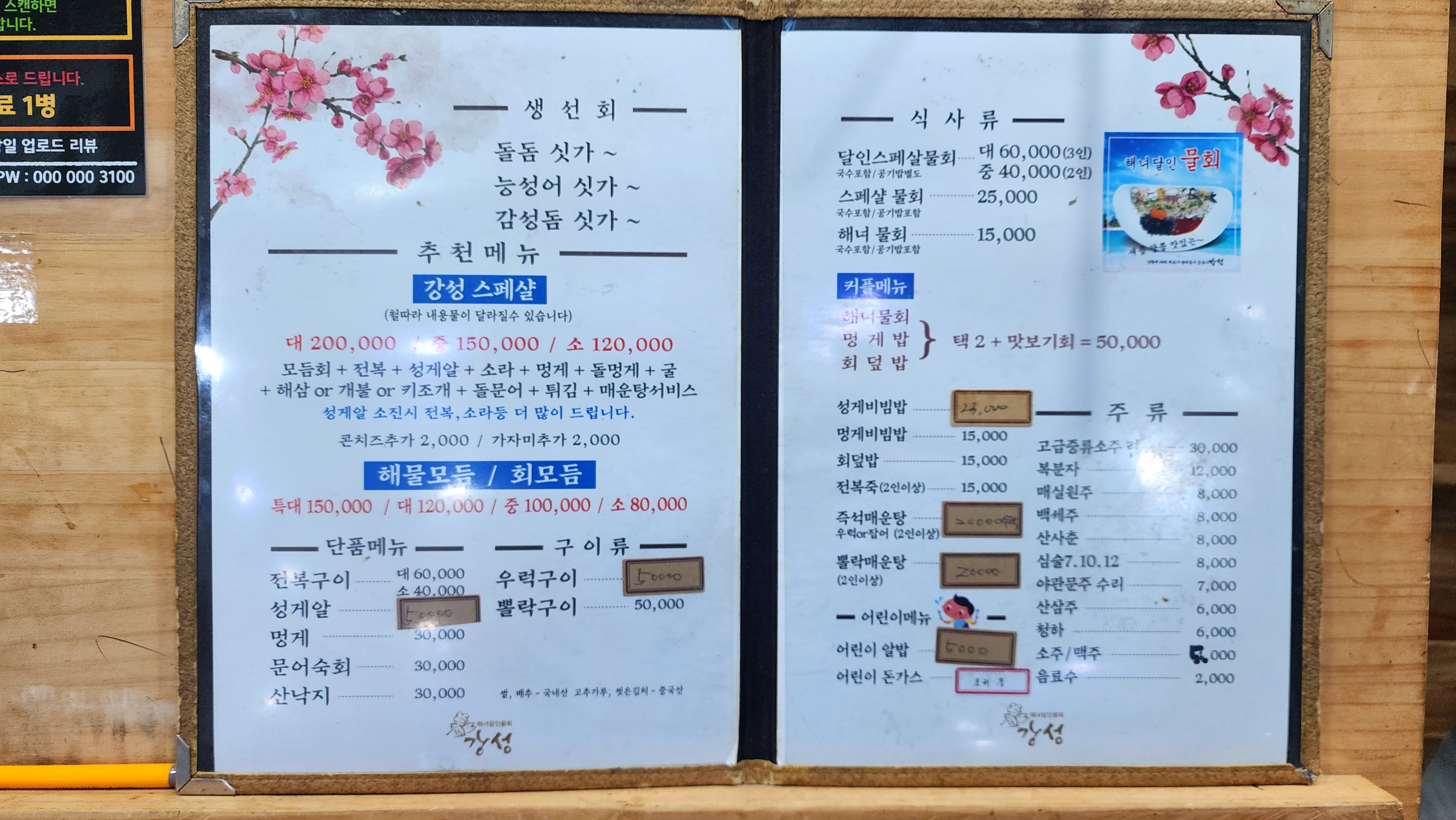TV프로 <서민갑부>에 해녀 선주집으로 소개되며 싱싱하고 푸짐한 곁들이찬으로 명성을 알린 '강성횟집 1호점'은 최근 물회 메뉴가 인기를 끌고 있어 점심때부터 많은 이들이 줄을 서서 기다릴 정도다.