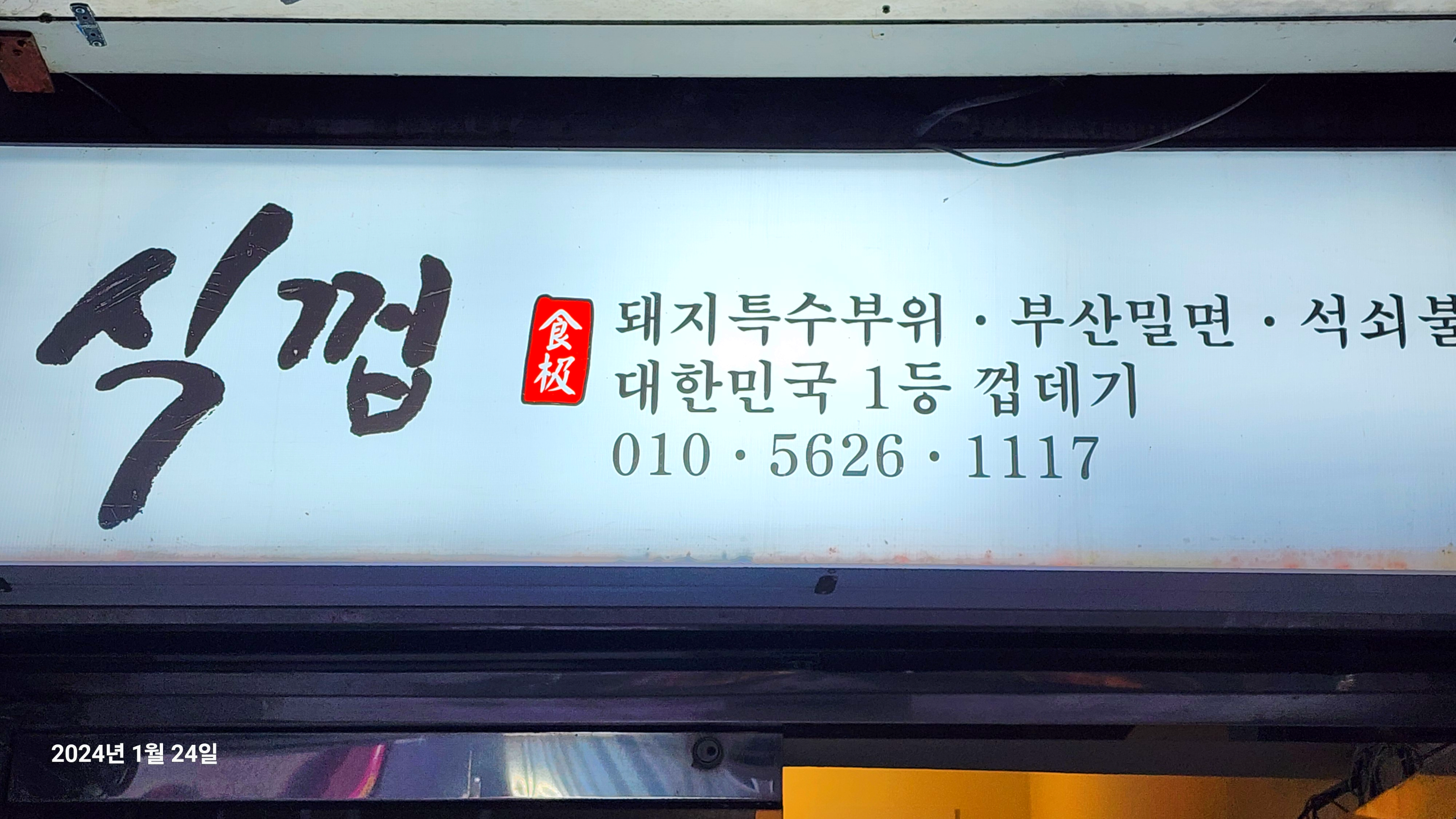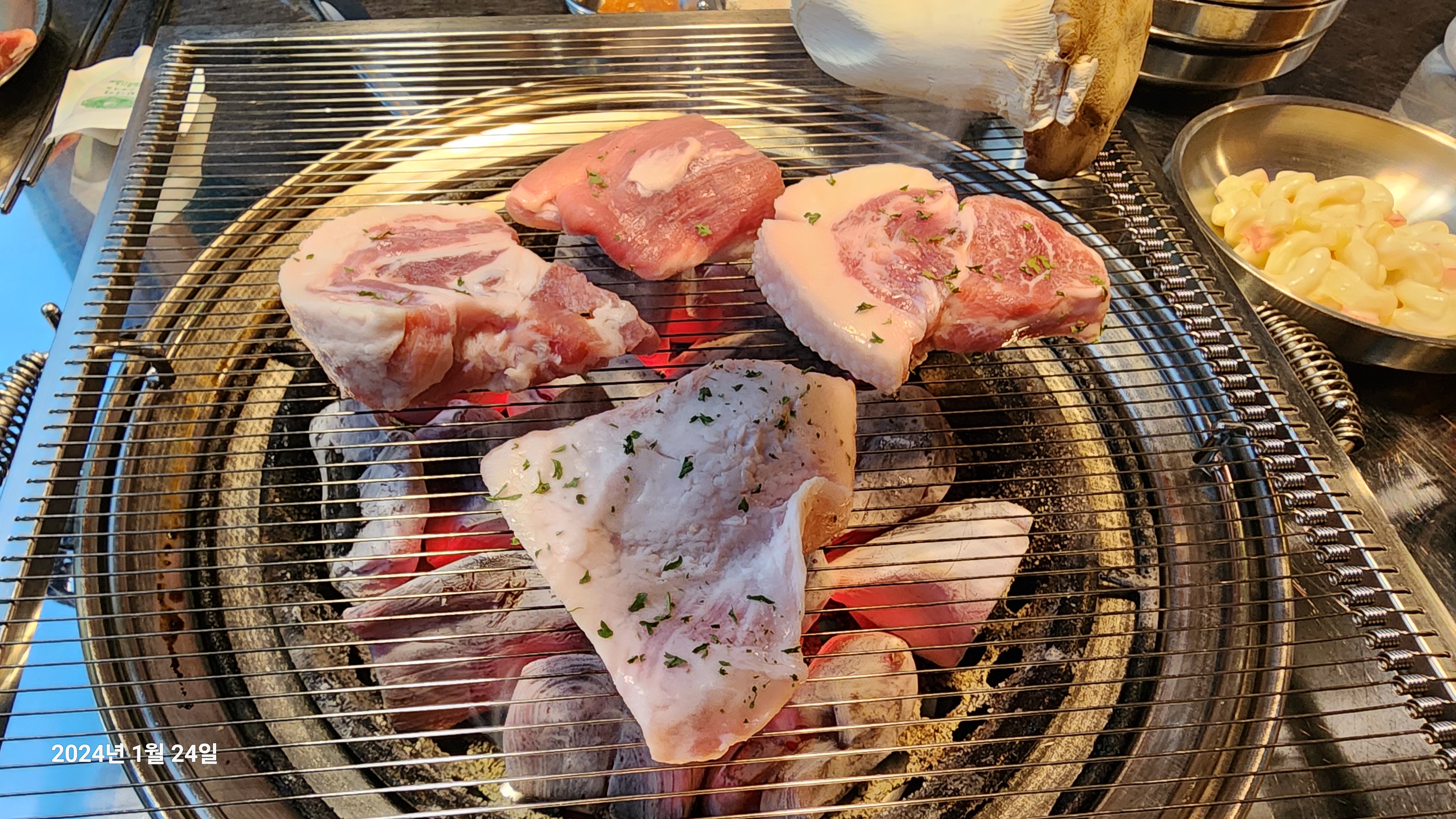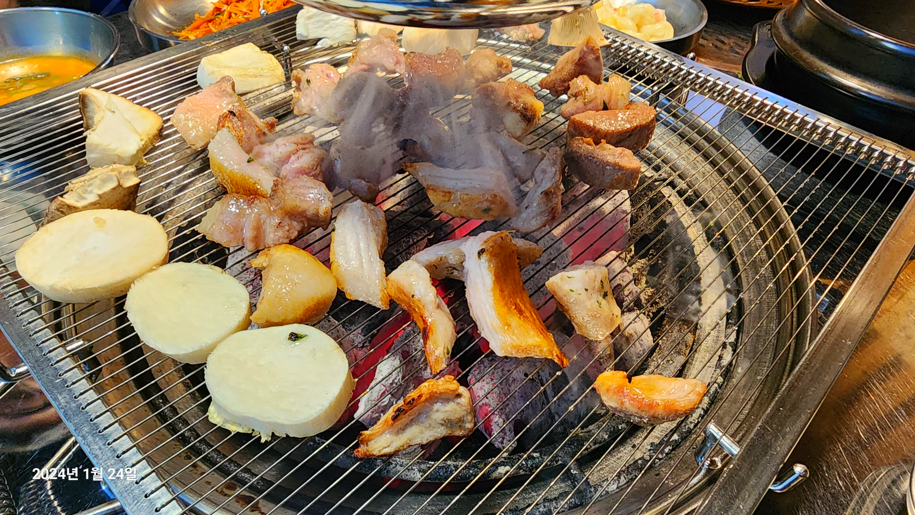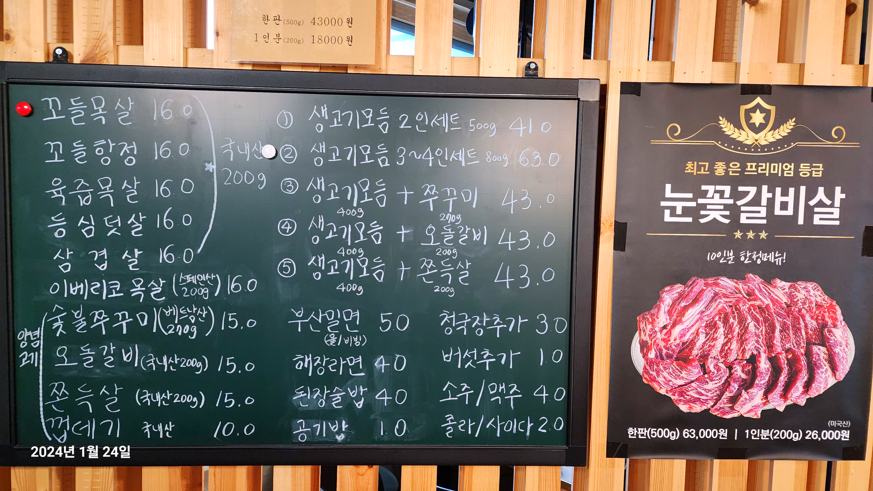 1/24일 동해, 정선을 경유하는 강원도 출장길에 정선에서 저녁으로 돼지 생고기 목살과 꼬들목살 생고기 맛집인 식겁에서 저녁을 먹었다 메뉴 소개해 본다.