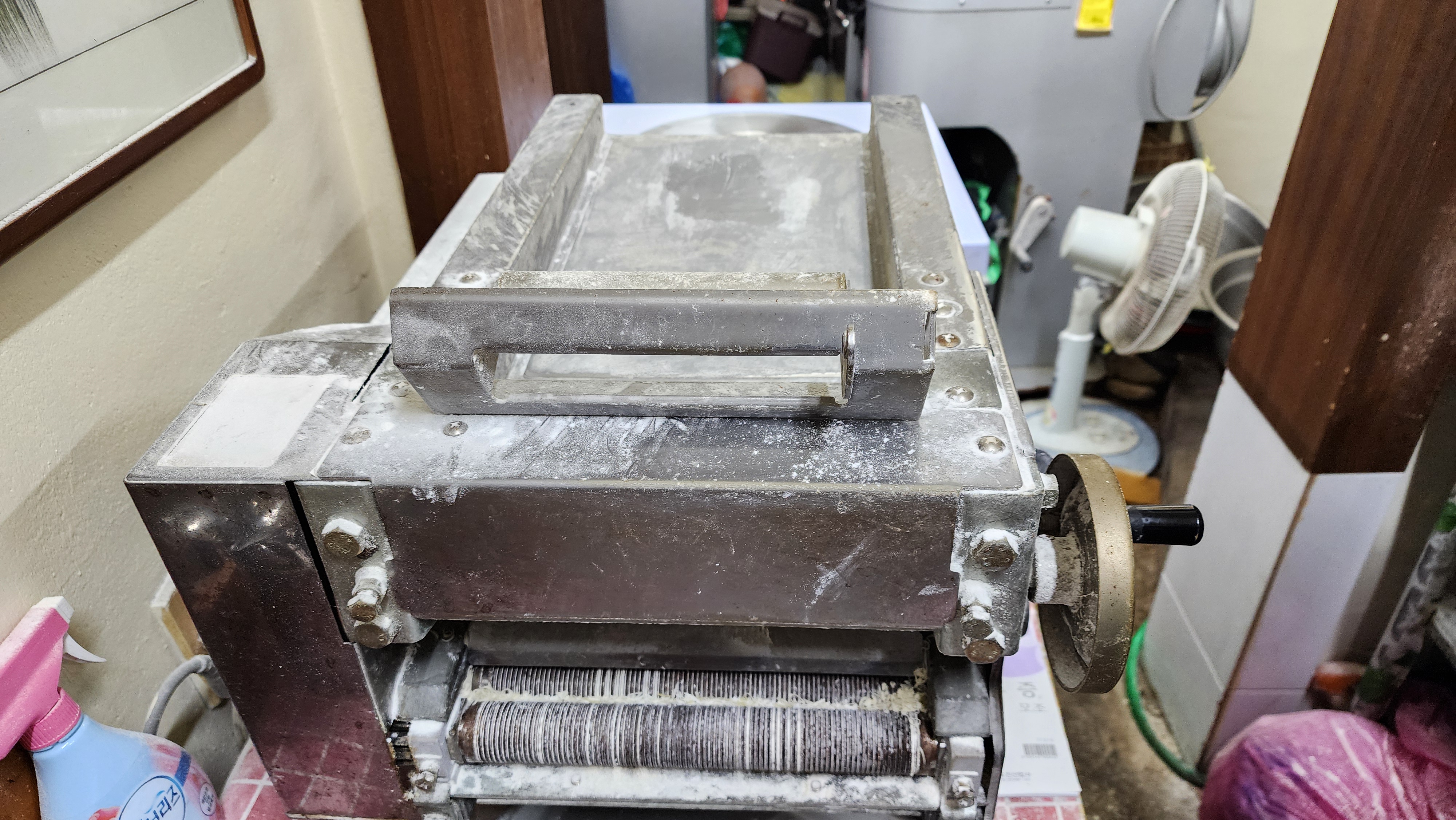 영동출장길에 충북 영동의 전통재래시장안에 있는 시장칼국수집에서 직접 뽑아 칼로 썰어 만든 수타면을 넣어 끓인 칼국수 한 그릇 먹으니 얼었던 몸이 사르르 녹는 좋은 경험을 했다 아날로그 감성 뿜뿜인 밀가루 반죽기와 칼로 썰어 만드는 쥔장님의 손맛 가득한 칼국수 소개해 본다.