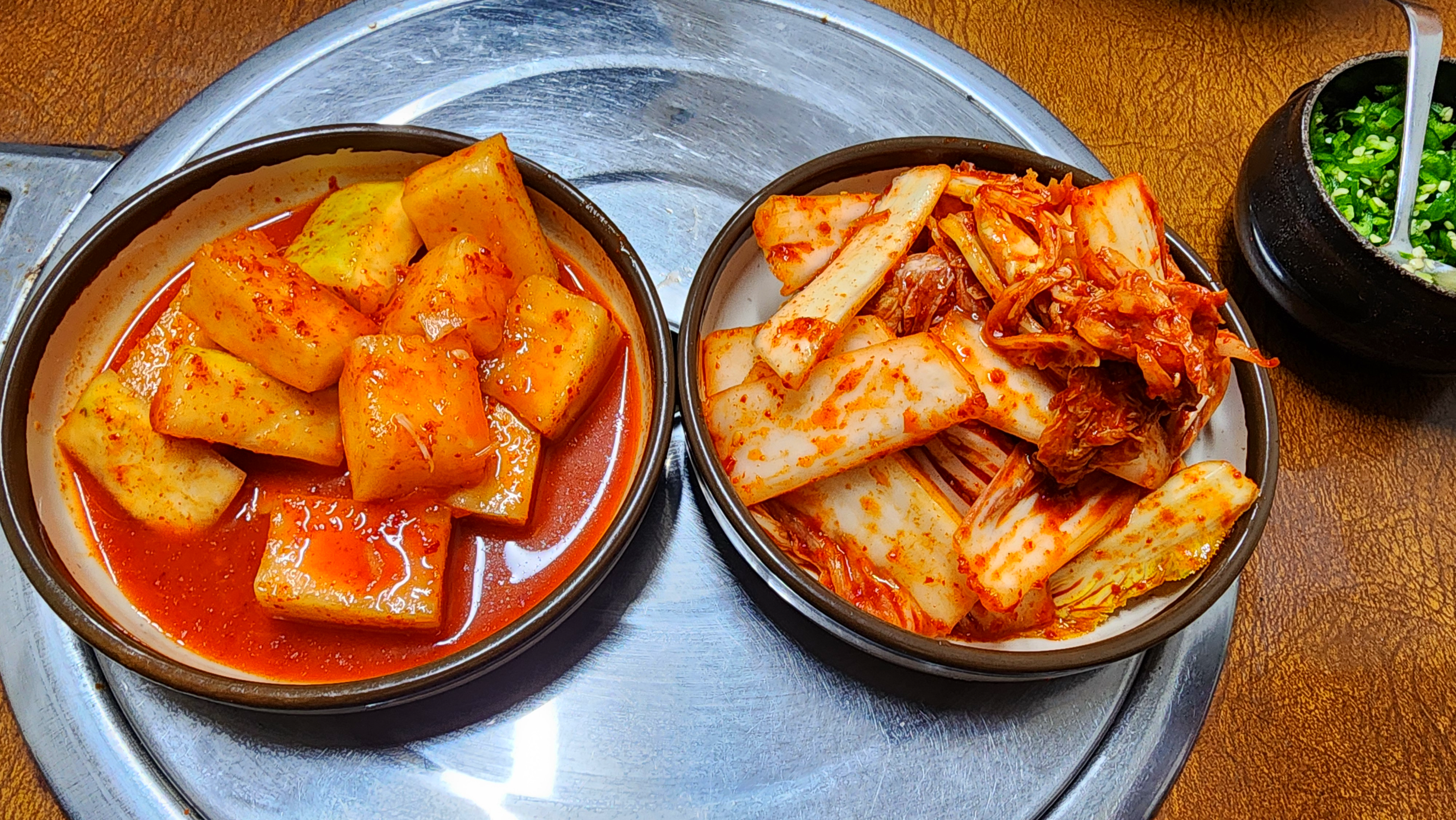 6. "김치 맛없는 집 치고, 장사 잘 되는 칼국수집 없다"는 말이 있다. 소문난 칼국수집의 김치는 색도 예쁘고 유난히 맛있다. 대부분 속성으로 절여 만든 겉절이 김치다. 숙성이나 발효를 한다고 해도 길어야 2~3일. 당일치기로 내놓는 것이 많다. 깊은 맛은 없지만 신선한 배추의 아삭거림이 칼국수의 툭툭 끊어지는 맛과 잘 어우러지기 때문이다. 매콤하면서 달달한 맛도 심심한 칼국수에 잘 어울린다. 먹다 말고 종업원을 불러 추가 김치를 요구할 만큼 맛나다. 칼국수집의 김치는 일반 가정집 김치와 담그는 법이 다르다. 몇몇 집의 비법을 들어보면 통고추를 직접 갈아 물에 불려서 쓰고, 마늘을 고춧가루의 양에 버금갈 정도로 듬뿍 넣는 집도 있다. 김치국물로 맹물 대신 칼국수의 기본 육수를 살짝 부어 맛을 내기도 한다.