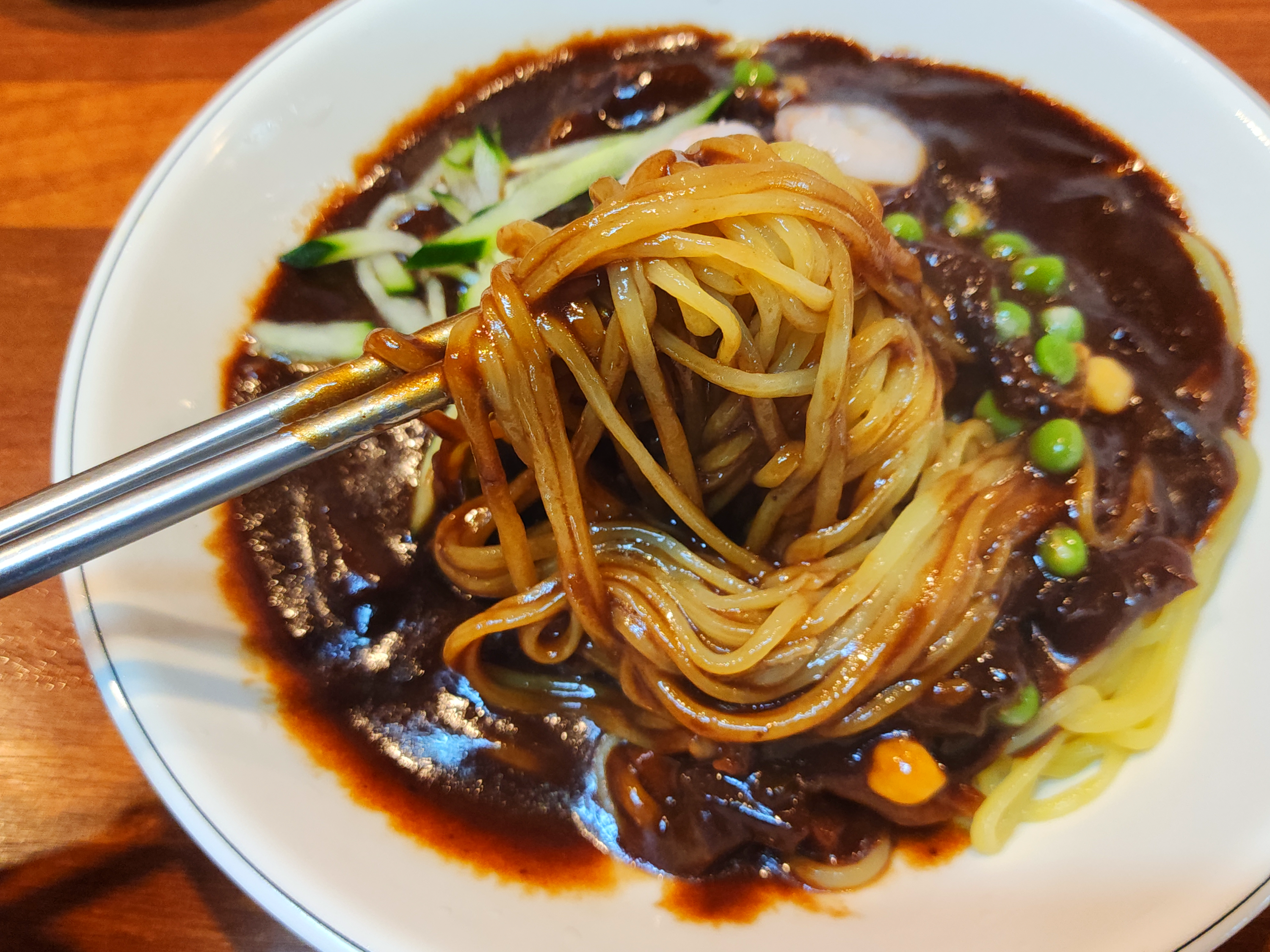 2. 짜장면은 오래된 연식만큼이나 즐기는 방식도 다양한데 단무지와 함께도 먹고, 고추가루를 솔솔 뿌려서 먹어도 별미다. 이곳의 짜장면은 곱게 썰린 재료와 되직한 소스, 탄성있는 면이 어우러진다. 단맛은 최대한 절제하면서 고소한 춘장의 풍미를 잘 살려냈다. 재료를 충분히 볶아 부드럽게 넘어가는 맛이 좋은데 중간중간 씹히는 해물들이 씹는 맛을 살렸다.