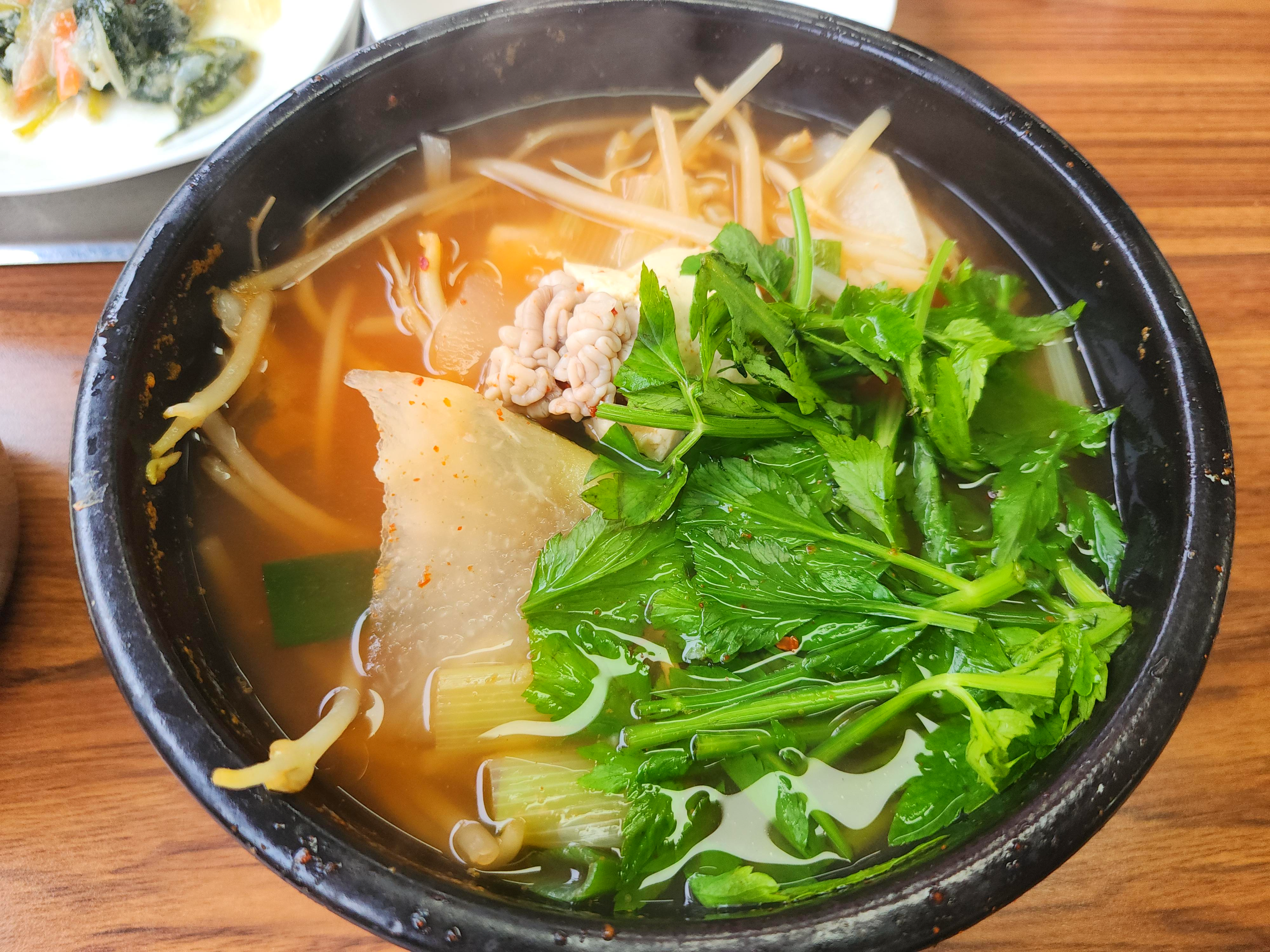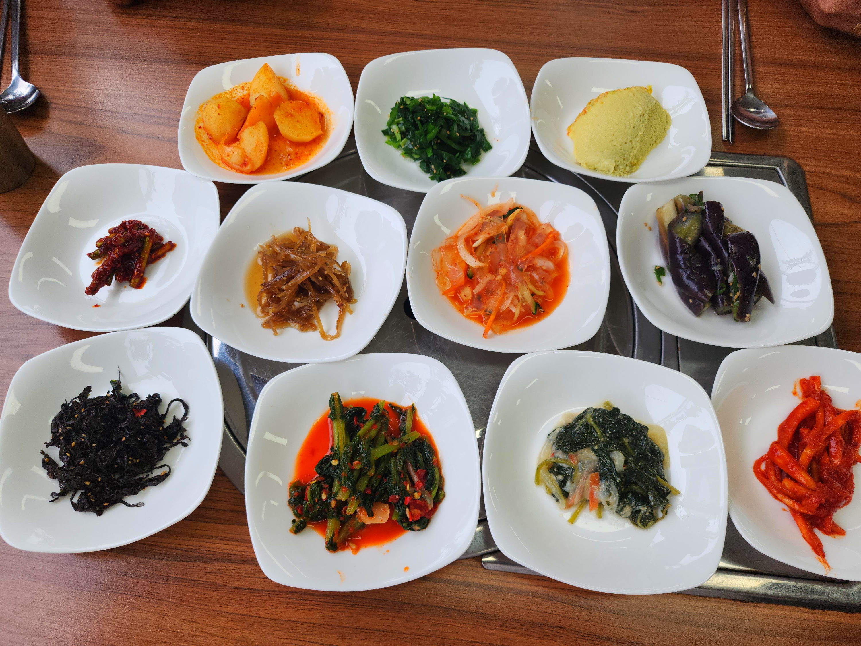 1. 대구탕이 나오기 전 차려진 11가지 다채로운 반찬들은 한국의 정서를 담은 채소밭은 연상케 한다. 매콤한 '열무김치', 부드럽고 고소한 '가지나물', 입안에서 살살 녹는 '계란찜'은 각각의 맛이 입맛을 돋우고, 취향에 맞게 골라 먹는 재미를 더한다. 서울식당의 이 매력적인 상차림은 밀양의 향토적인 맛의 진수를 경험하게 해주는 순간이다.