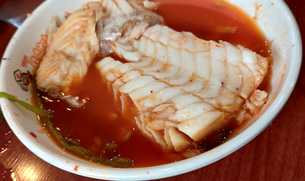 2. 주 메뉴인 '대구탕'은 맑은 국물에 큼직하게 썬 대구와 최소한의 양념으로 간을 하여 생대구 본연의 깔끔하면서도 개운한 맛을 최대로 끌어냈다. 살이 통통하게 오른 대구살은 베어 무는 순간 입안 가득 풍성하게 차는 식감이 매력적이다. 국물에 촉촉하게 적셔진 대구살은 고추냉이 간장을 곁들이면 한층 감칠맛이 살아난다.