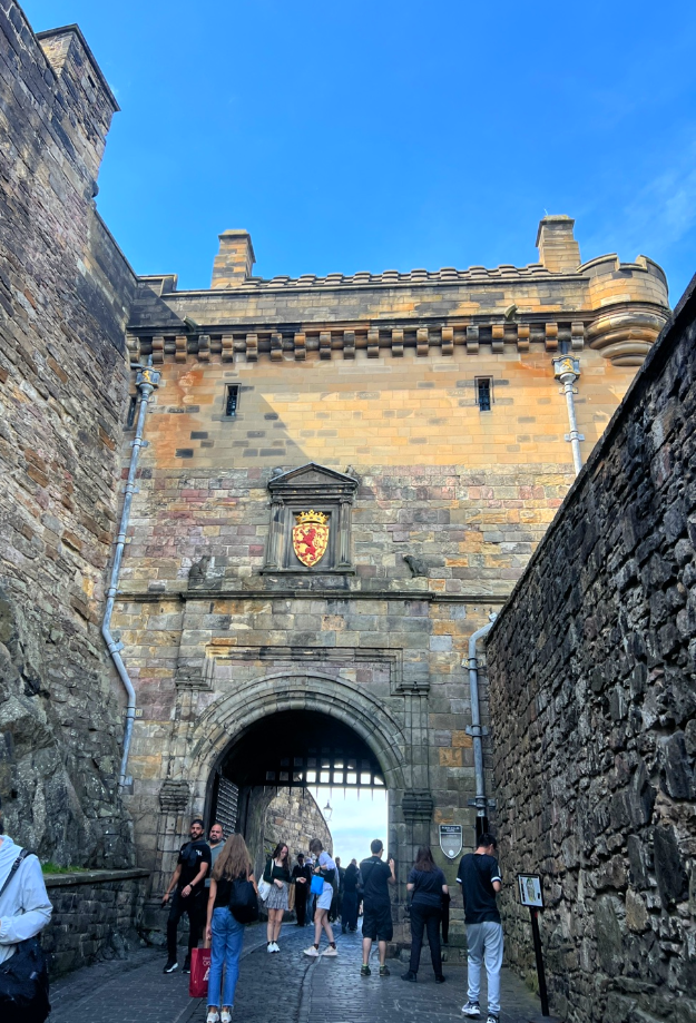 7. 에든버러 성의 중심에 위치한 이 웅장한 입구는 "포트컬리스 게이트(Portcullis Gate)"로 알려져 있으며, 1574년부터 1577년 사이에 건설되었다. 이 게이트는 에든버러 성으로 들어가는 주요 관문으로, 성의 안팎을 연결하는 역사적인 통로다. 포트컬리스는 원래 중세 시대에 성을 방어하기 위해 사용된 무거운 격자문을 의미한다. 이 문은 필요할 때 빠르게 닫을 수 있어 성을 적의 침입으로부터 보호하는 중요한 역할을 했다.