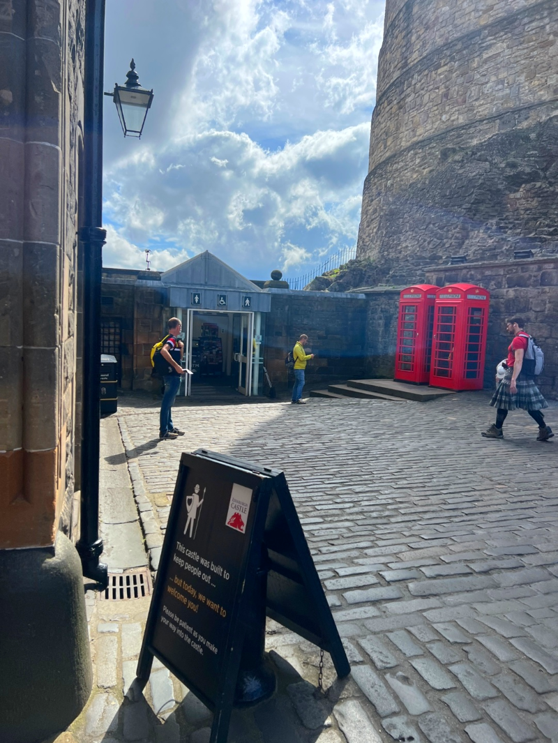 표지판은 또한 'The One O'Clock Gun'이라는 에든버러 성의 전통적인 일일 행사를 안내한다. 이 대포는 매일 정오가 되면 발사되며, 이는 시간을 알리는 역할을 할 뿐만 아니라 에든버러의 중요한 전통으로 자리 잡고 있다. 방문객들은 이 특별한 순간을 목격하며 성의 역사적인 분위기를 더욱 생생하게 느낄 수 있기도 하다.