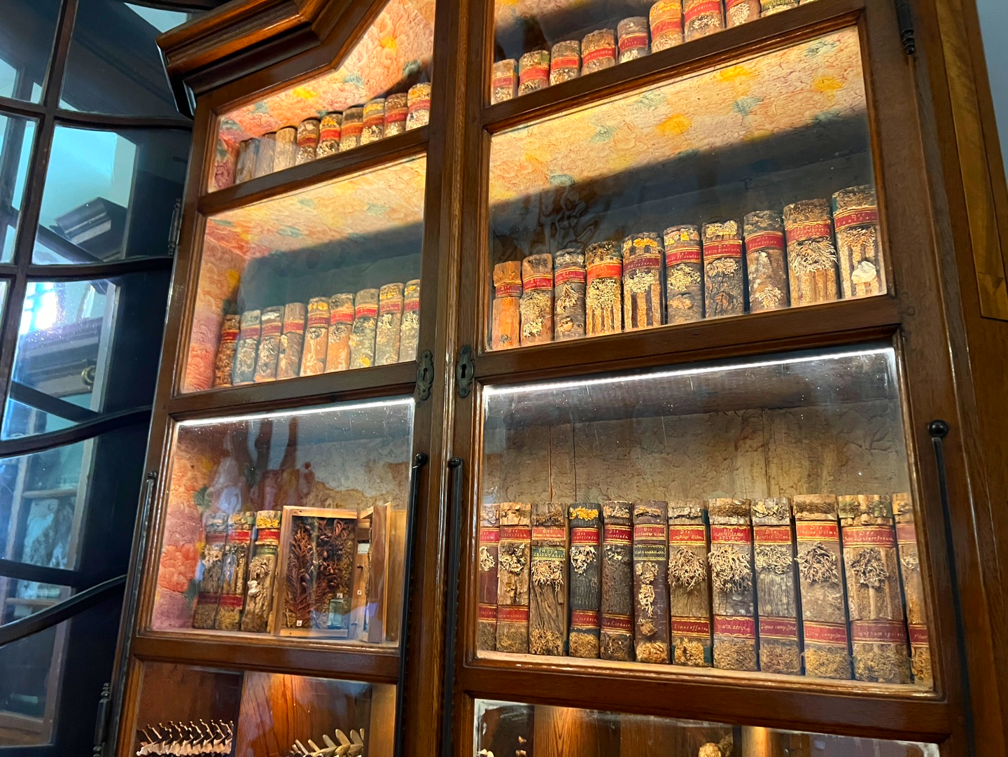 10. 이 서가에 꽂혀있는 책들은 중세에서 근대 초기에 걸친 유럽의 종교, 철학, 과학에 대한 지식을 담고 있다. 이 고서들은 수백 년의 시간을 거슬러 올라가는데, 그중 일부는 르네상스 시대의 손글씨 필사본도 포함되어 있다.