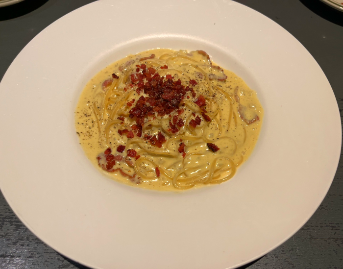 고소한 치즈 소스가 면을 부드럽게 감싸고, 베이컨이 그 위에서 바삭한 대비를 이루어 한층 먹음직스러운 파스타의 모습이 완성된다. 특히 매드포갈릭 특유의 마늘 풍미가 더해지니 이탈리안 요리에만 있을 것 같은 낯섦이 한국적인 정서와 절묘하게 어울려 별미를 완성한다.