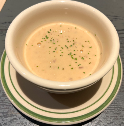 눈길을 사로잡는 비주얼도 빼놓을 수 없다. 적당히 걸쭉하면서도 결이 고운 수프 위에 소소하게 뿌려진 파슬리 가루가 마치 작은 꽃가루처럼 흩날려 음식을 더욱 아름답게 빛내준다.