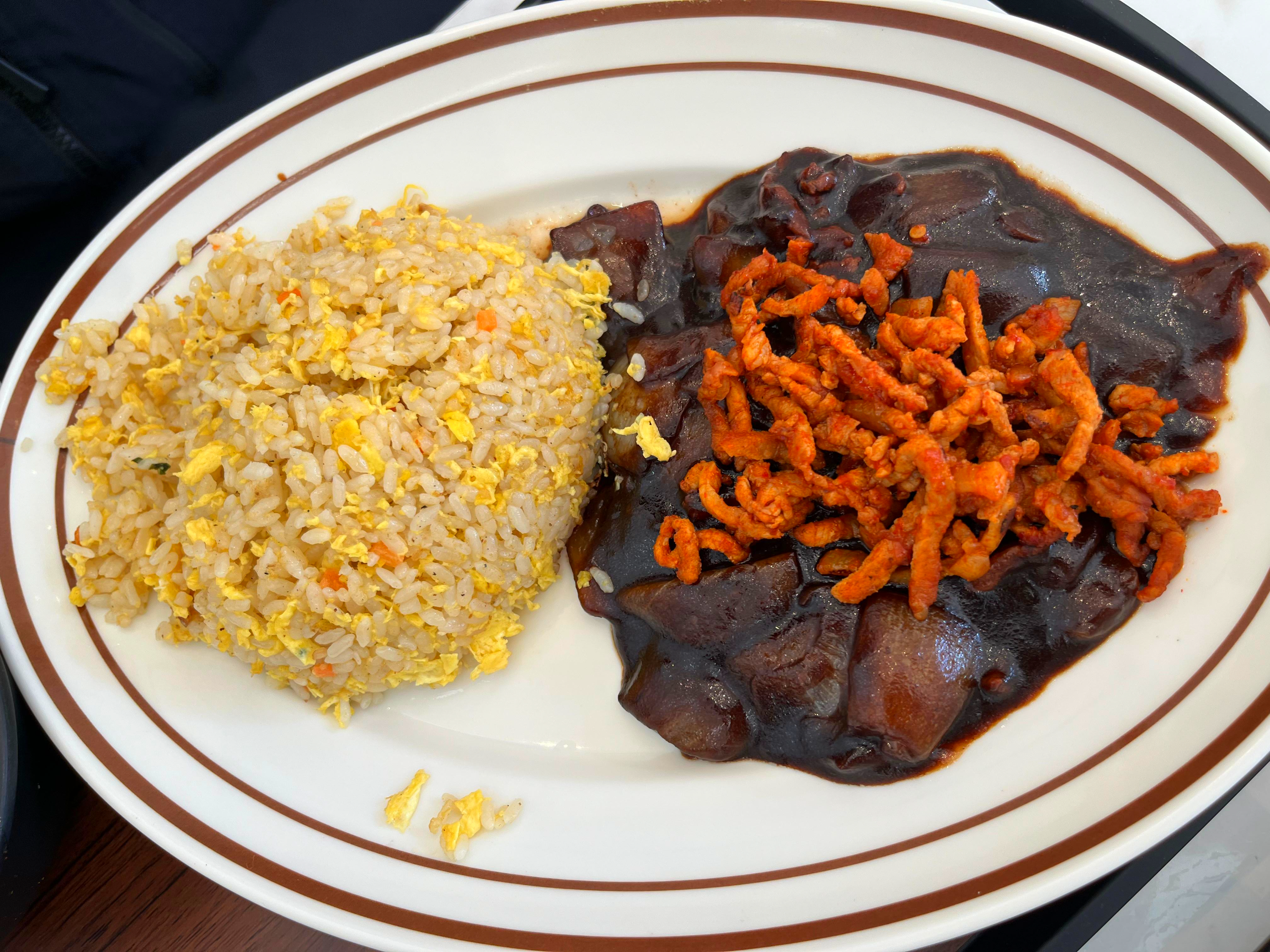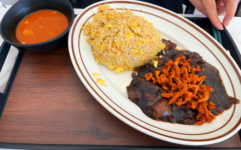 함께한 지인이 주문한 불짬뽕볶음밥은 접시에 담겨 나오는 순간부터 묵직한 존재감을 드러낸다. 윤기 흐르는 볶음밥 위로 고슬고슬한 쌀알과 계란이 고르게 어우러지고, 그 옆에는 불향을 가득 머금은 짙은 불짬뽕 소스가 넉넉하게 펼쳐져 시각부터 자극한다.