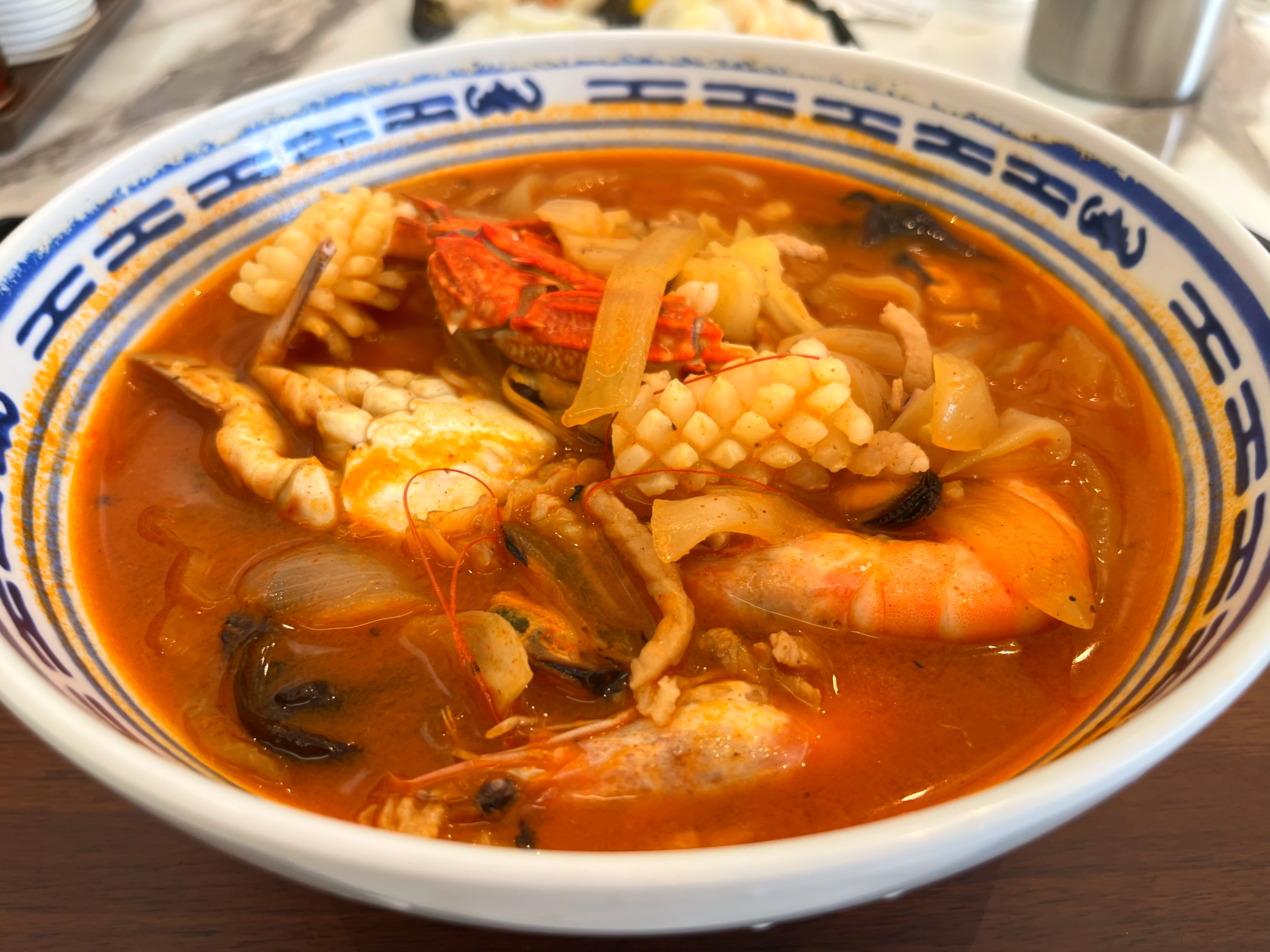 홍여사가 주문한 해물짬뽕은 그릇에 담겨 나오는 순간부터 시선을 사로잡는다. 붉게 빛나는 국물 위로 큼직한 새우와 꽃게, 갑오징어가 아낌없이 올라가 있고, 투명하게 익은 양배추와 양파가 어우러져 바다의 풍경을 그대로 옮겨놓은 듯한 비주얼을 완성한다.