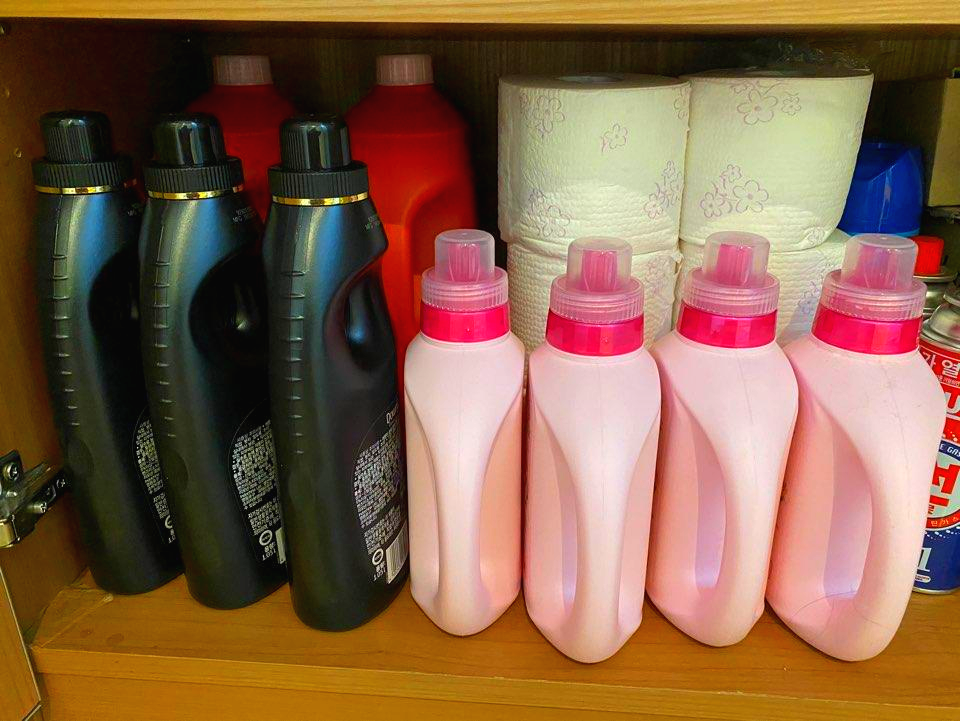 핑크색 용기의 세제는