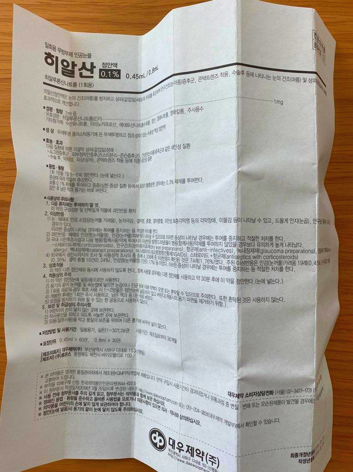 처방전 받아 구입한 히알산 점안액을
