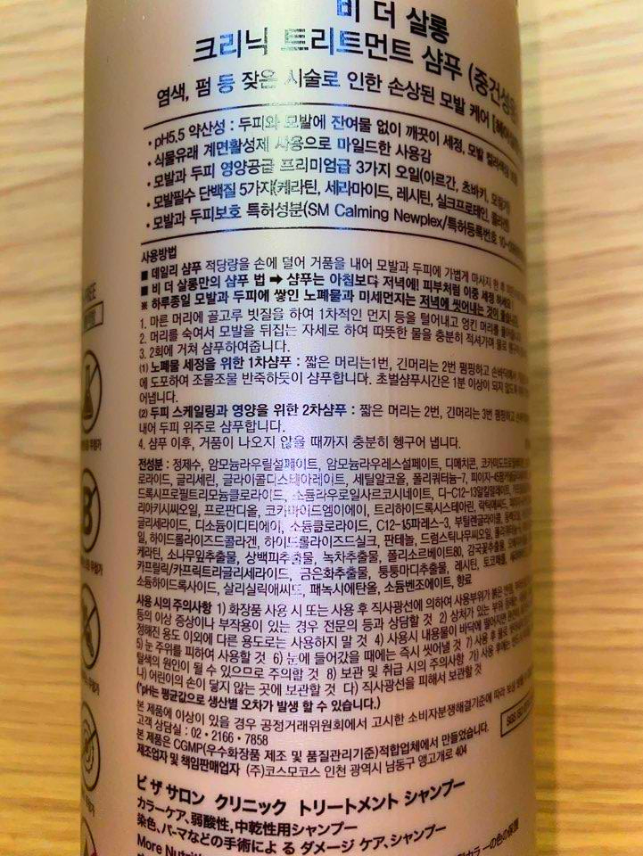 샴푸 용기의 뒷면