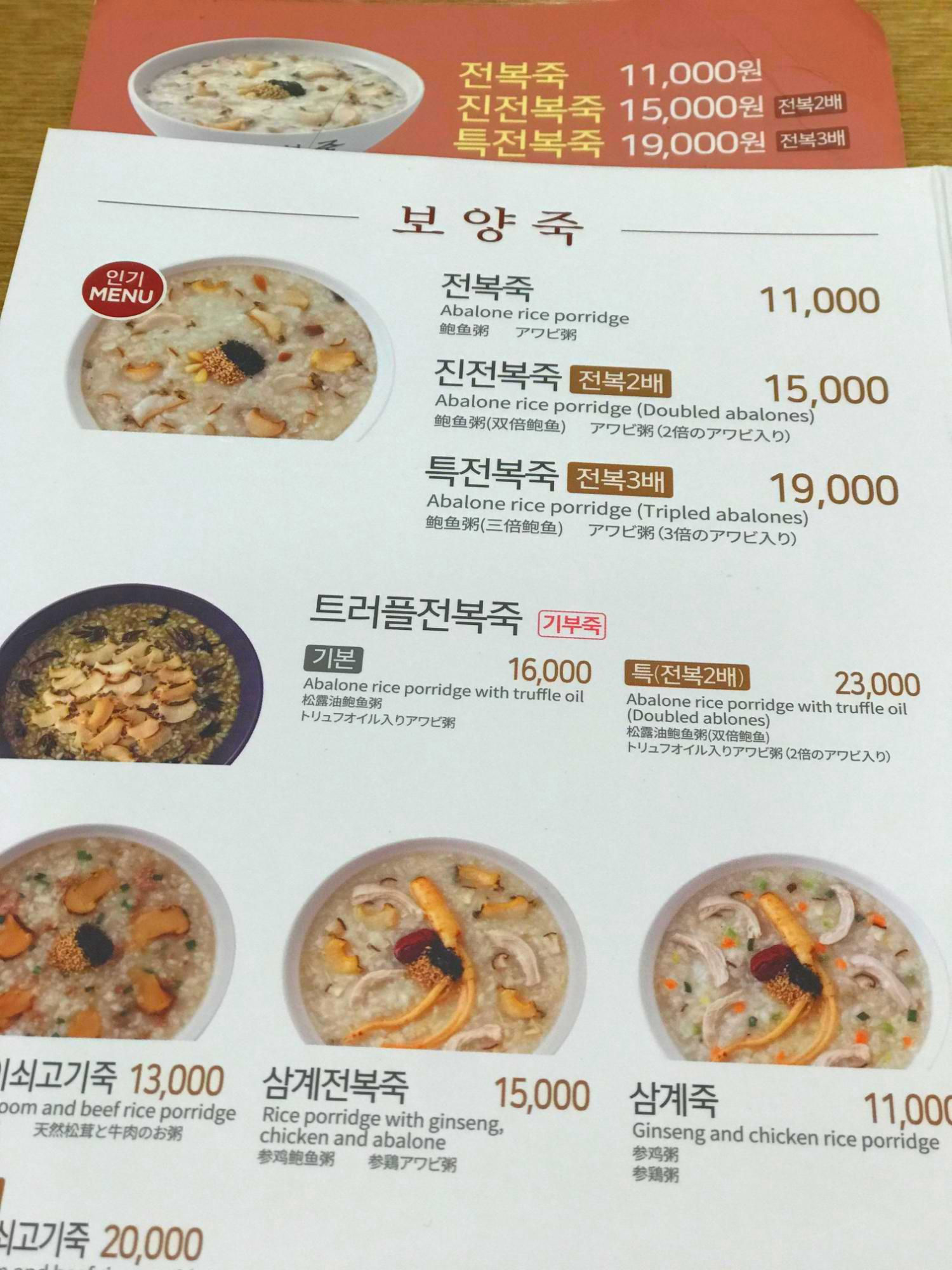 트로플전복죽>삼계죽>삼계전복죽