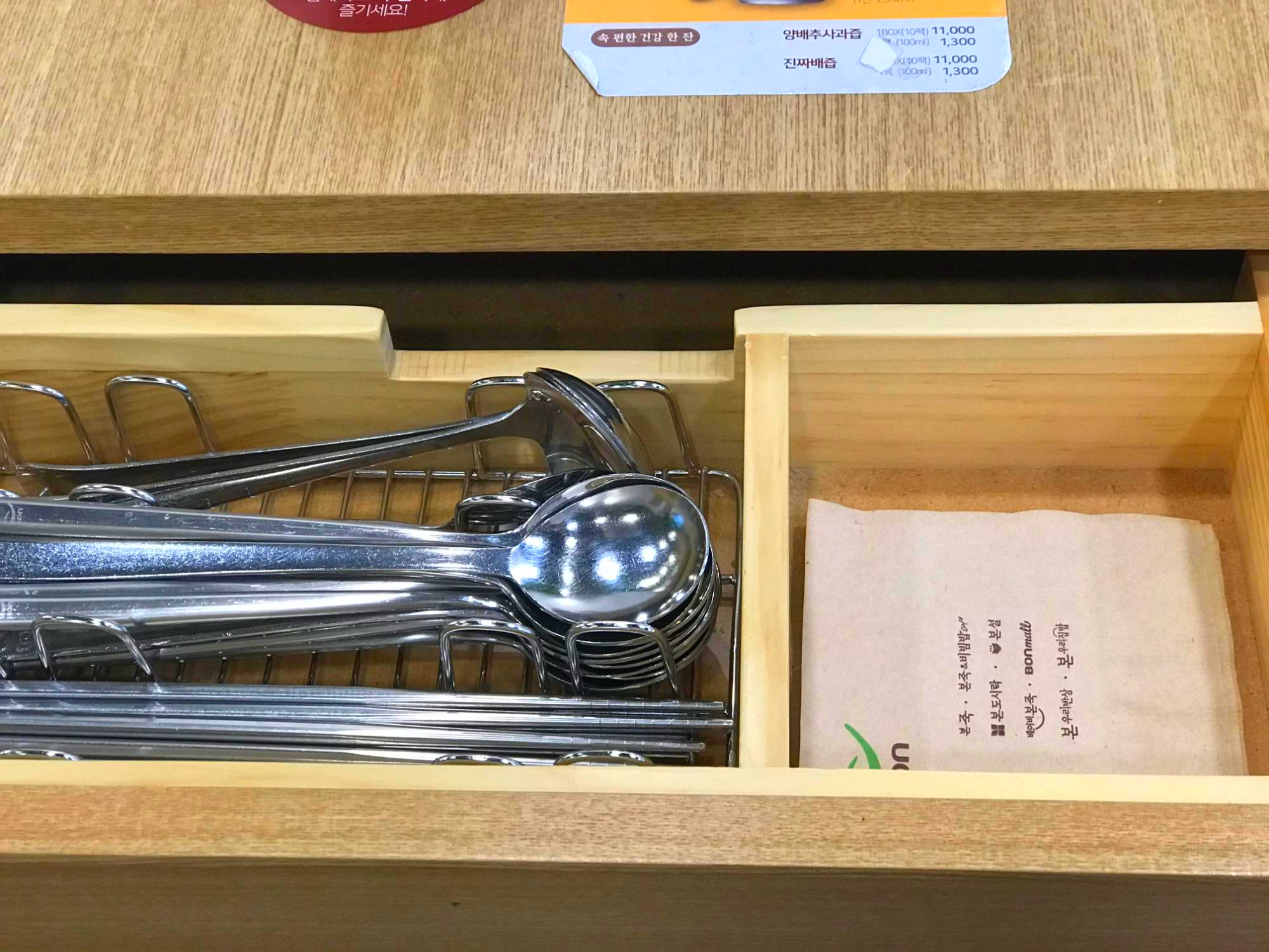 수저는 탁자 옆의 서랍을 열면