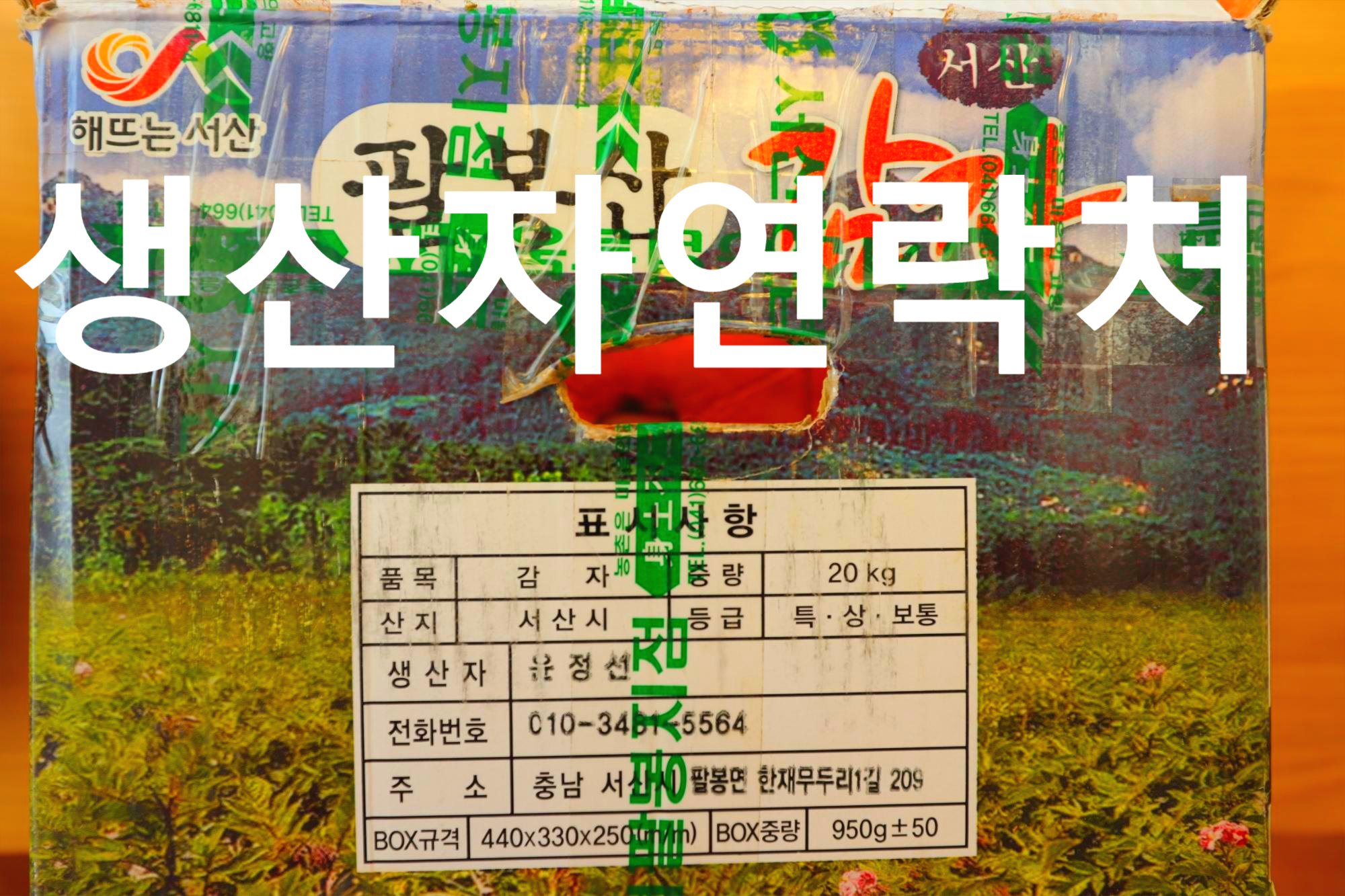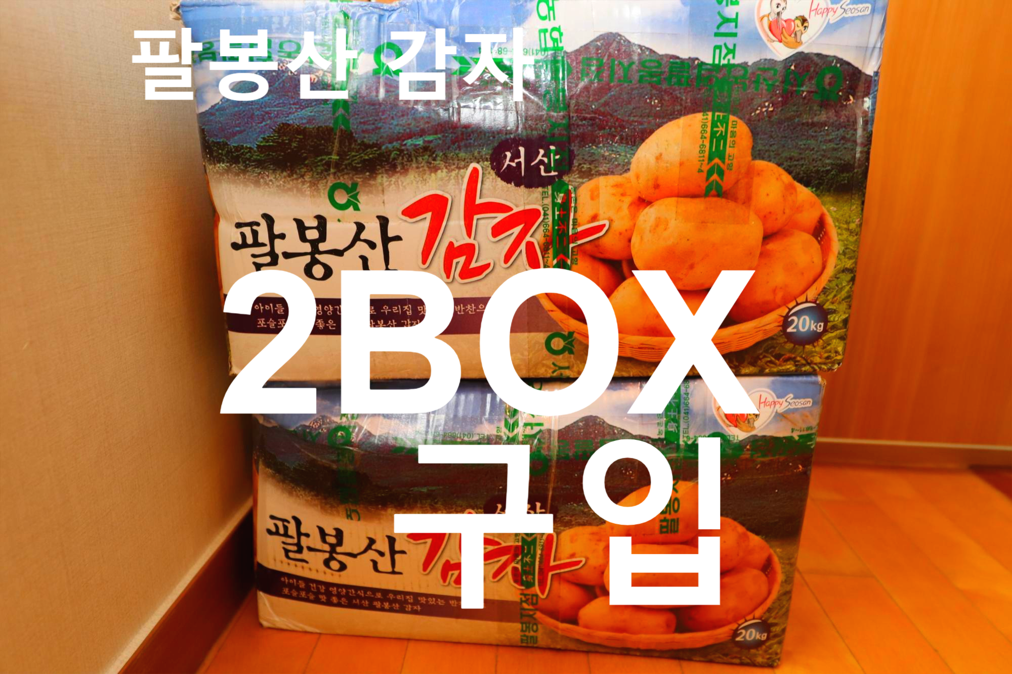 서산 팔봉산 감자 2BOX가 놓여진 현관앞