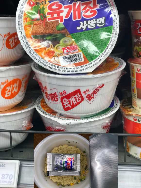 분식집 옆 마트에서 같이 먹을 컵라면을